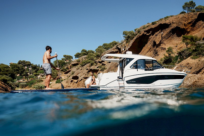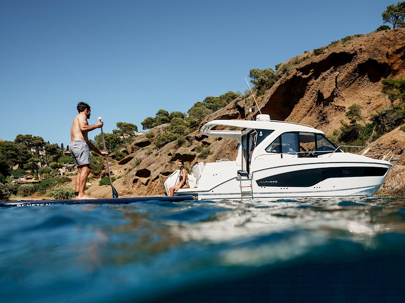 The Benchmark Weekender, Reimagined - Beneteau Antares 9. Beneteau’s all-new Antares 9 is the modern evolution of a proven coastal cruiser—designed to offer comfort, safety, and versatility for families looking to maximize their time on the water. At just under 30 feet (8.23 m), this sleek, compact model blends smart interior volume with performance, making it the ideal weekend boat. The standout feature of the new Antares 9 is its fully enclosed cabin, offering protection from wind, spray, or sudden changes in weather—an essential for year-round boating or unpredictable hot summer conditions. Large panoramic windows and a sliding sunroof flood the interior with natural light, while two private cabins, a galley, and a convertible dining table allow up to four adults to sleep comfortably aboard. With clever layout upgrades and modular seating, the Antares 9 balances function and relaxation with refined ease. On deck, the boat features an L-shaped cockpit lounge, a walkaround forward deck, and an integrated swim platform, making it easy to move about and enjoy the outdoors. Engineered for maneuverability, the Antares 9 is powered by twin 200 HP outboards, delivering a cruising speed of approximately 22 knots (25 mph) and a top speed nearing 37 knots (43 mph), depending on conditions and load. Whether anchoring off a quiet cove, pulling into a lively marina, or enjoying a day of fishing and family fun, the new Antares 9 offers the space, performance, and comfort to turn short getaways into unforgettable weekends. Beneteau has once again delivered a boat that meets the moment—with smart upgrades, bold style, and the reliability today’s boaters demand. The Antares 9 isn’t just a step forward for the Antares line—it’s a redefinition of what a small cruiser can be.