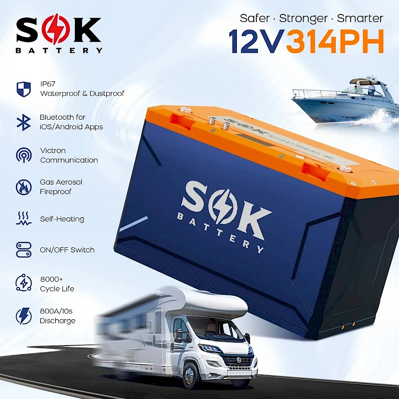 Experience exceptional power and intelligent performance with the SOK 12V 314Ah / 24V 150Ah Heated Lithium Battery with Victron Communications. Built for all-weather reliability, this battery combines high-capacity energy storage with advanced communication capabilities. With a built-in heating system, Bluetooth monitoring, and Victron Comms compatibility, it's the ideal power solution to keep you out at anchor for extended periods.
