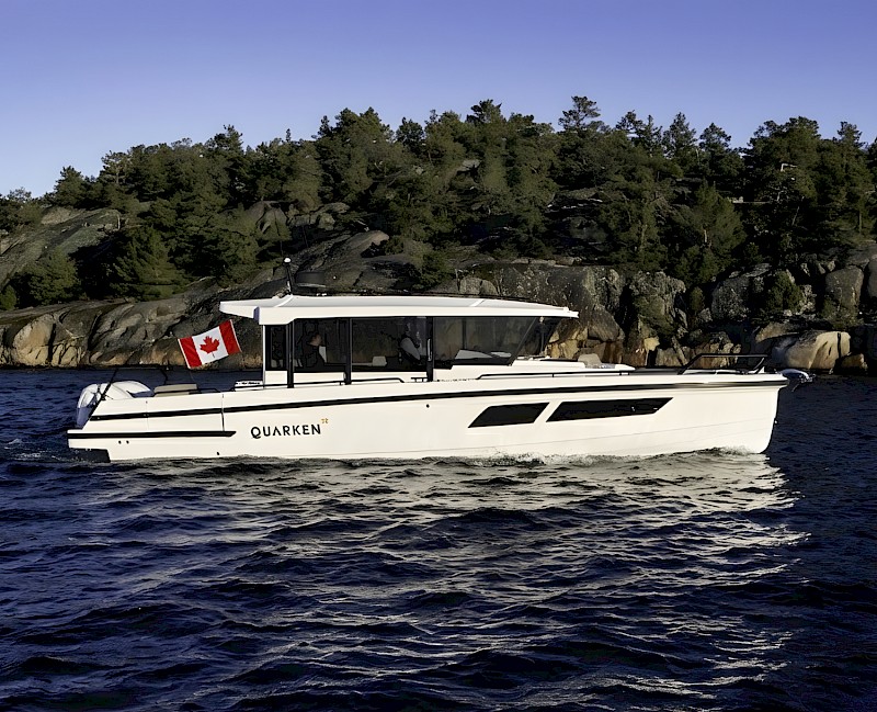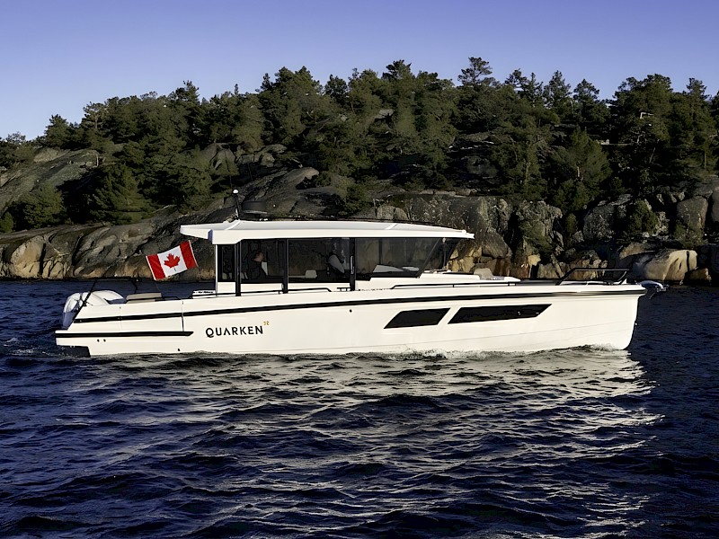 Designed for all-weather cruising on Canada’s Great Lakes, the Quarken 35 Cabin Tourer blends Scandinavian design with confident performance. The enclosed pilothouse offers protection and visibility in changing conditions, while the refined cabin layout supports comfortable day trips and extended weekends. A versatile cockpit, secure walkarounds, and premium finish make it ideal for Ontario boaters who value comfort without sacrificing capability.