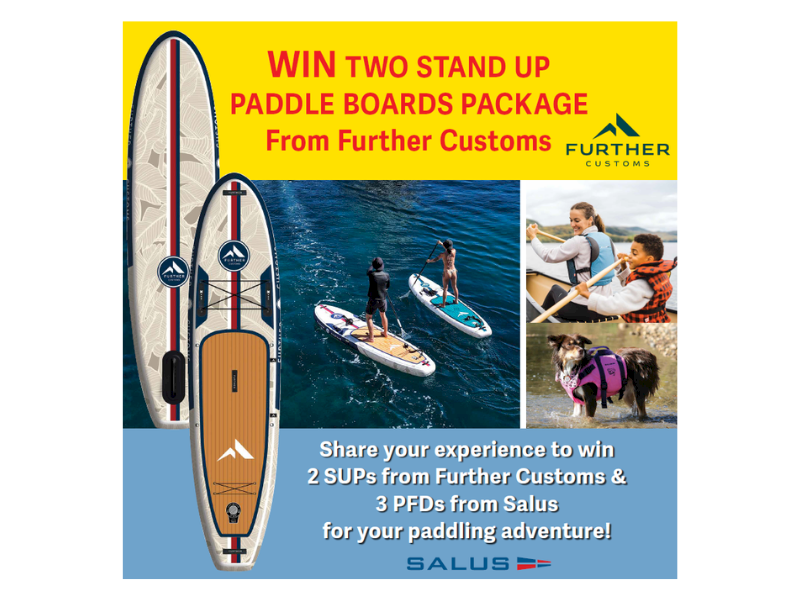 Share your experience to win 2 SUPs from Further Customs and 3 PFDs from Salus for your next paddling adventure!