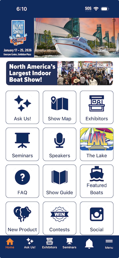 Follow the links above to download the app. Click on “Find Events” and select “Toronto International Boat Show”. That’s it!