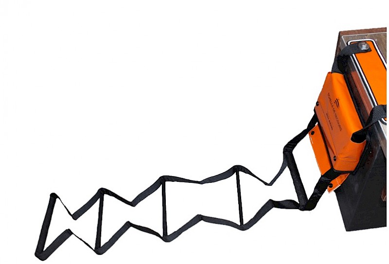 The Emergency Dock Ladder is a high-visibility reboarding solution designed for fast, safe recovery in the water. Securely mounted to pontoon rails, it deploys instantly via a pull-cord, leaving at least four rigid rungs submerged for stable climbing. Built from reinforced polyester webbing with a durable, PVC-coated case, it remains visible day or night thanks to bright orange fabric and reflective tape. Compact, unobtrusive, and EN/ISO 15085 compliant, it delivers dependable safety when every second matters.